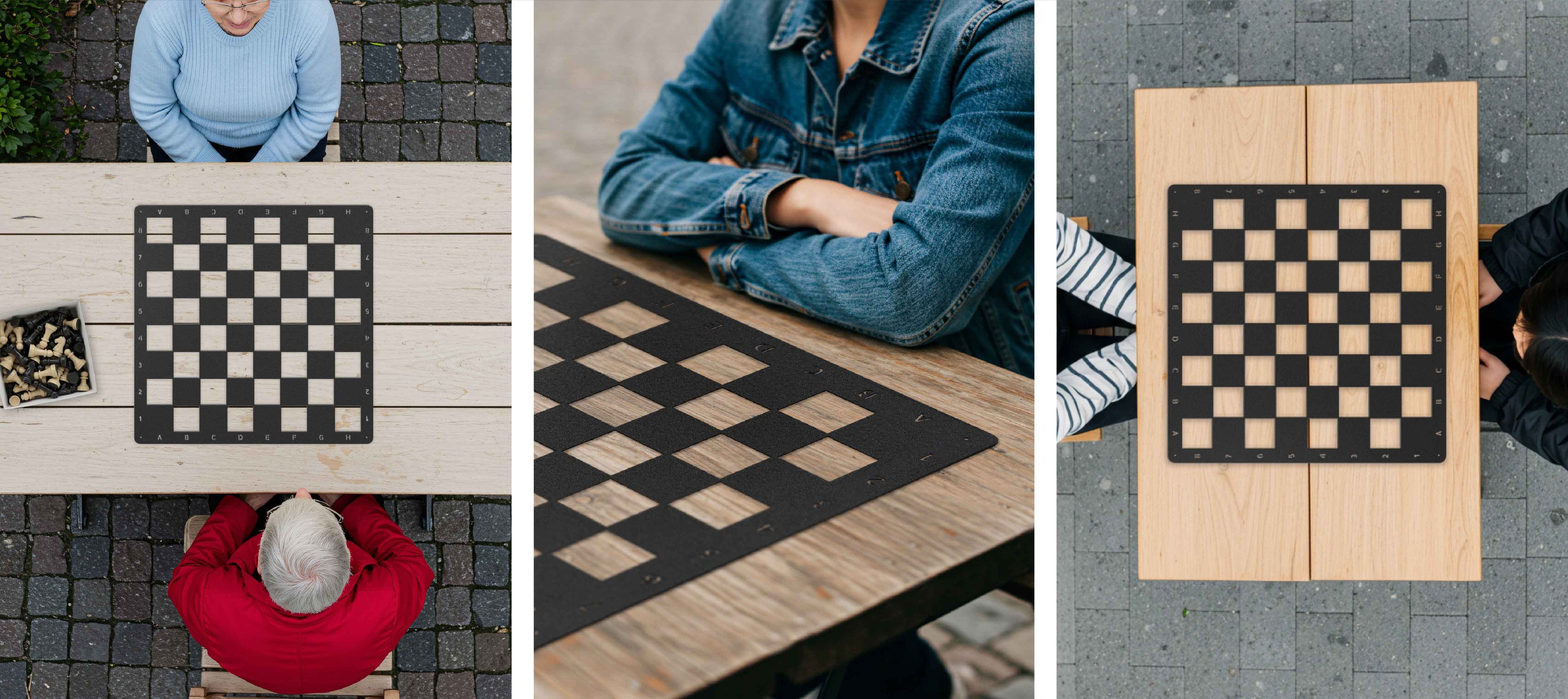 Turn any surface into your own chess table. This durable metal chess board fits seamlessly at home, in the park, or out in the backyard; giving you the freedom to hold matches wherever you like. It's built to withstand the elements and spills, so you can setup anywhere, and focus on your strategy.